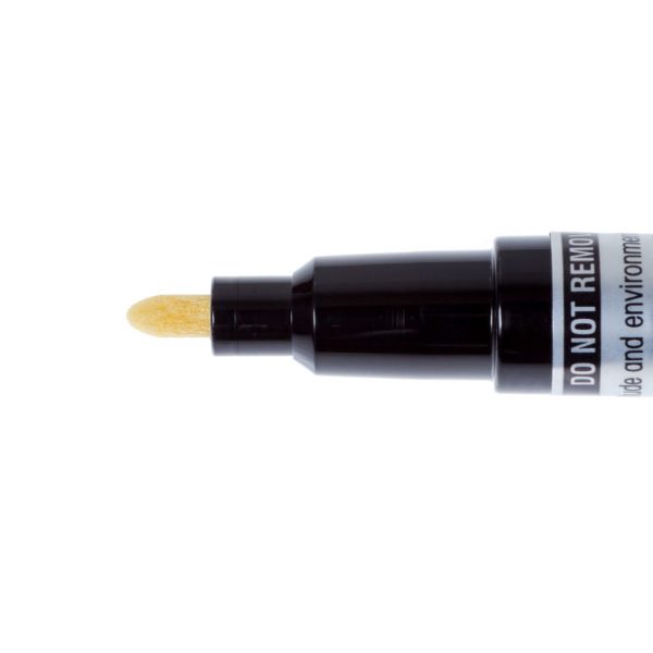 Pennarello a base olio con punta tonda, vernice permanente e coprente con effetto smalto.