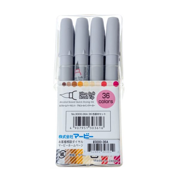 I pennarelli Marvy Le Plume 3000 da 36 pezzi sono a base d’alcohol, disponibili in differenti set di colore.
