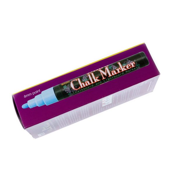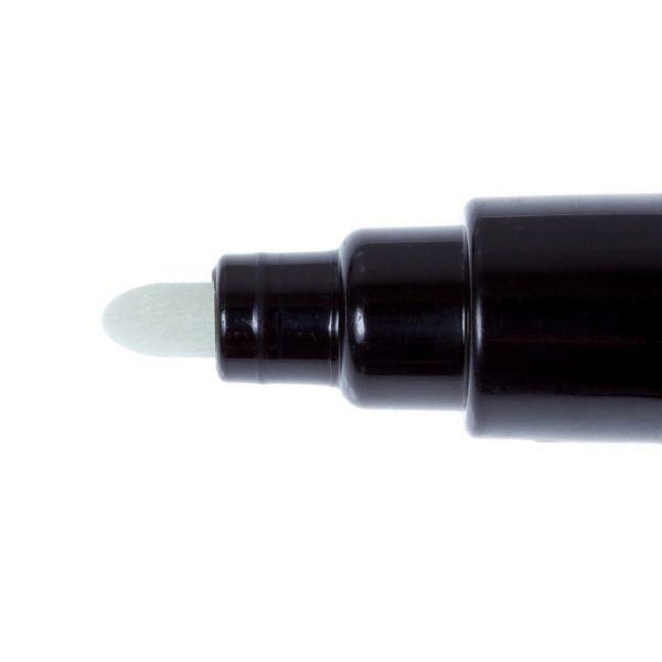 Marcatore punta tonda a gesso liquido, ideale per vetro e vetrine, ma perfetto anche su lavagne nere, plastica, e metallo. Non tossico, a base d’acqua, cancellabile con un panno umido da tutte le superfici non porose.