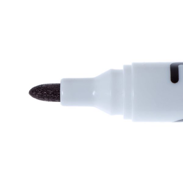 Pennarello permanente, punta tonda, inchiostro a base alcool, fusto in plastica, asciugatura rapida.